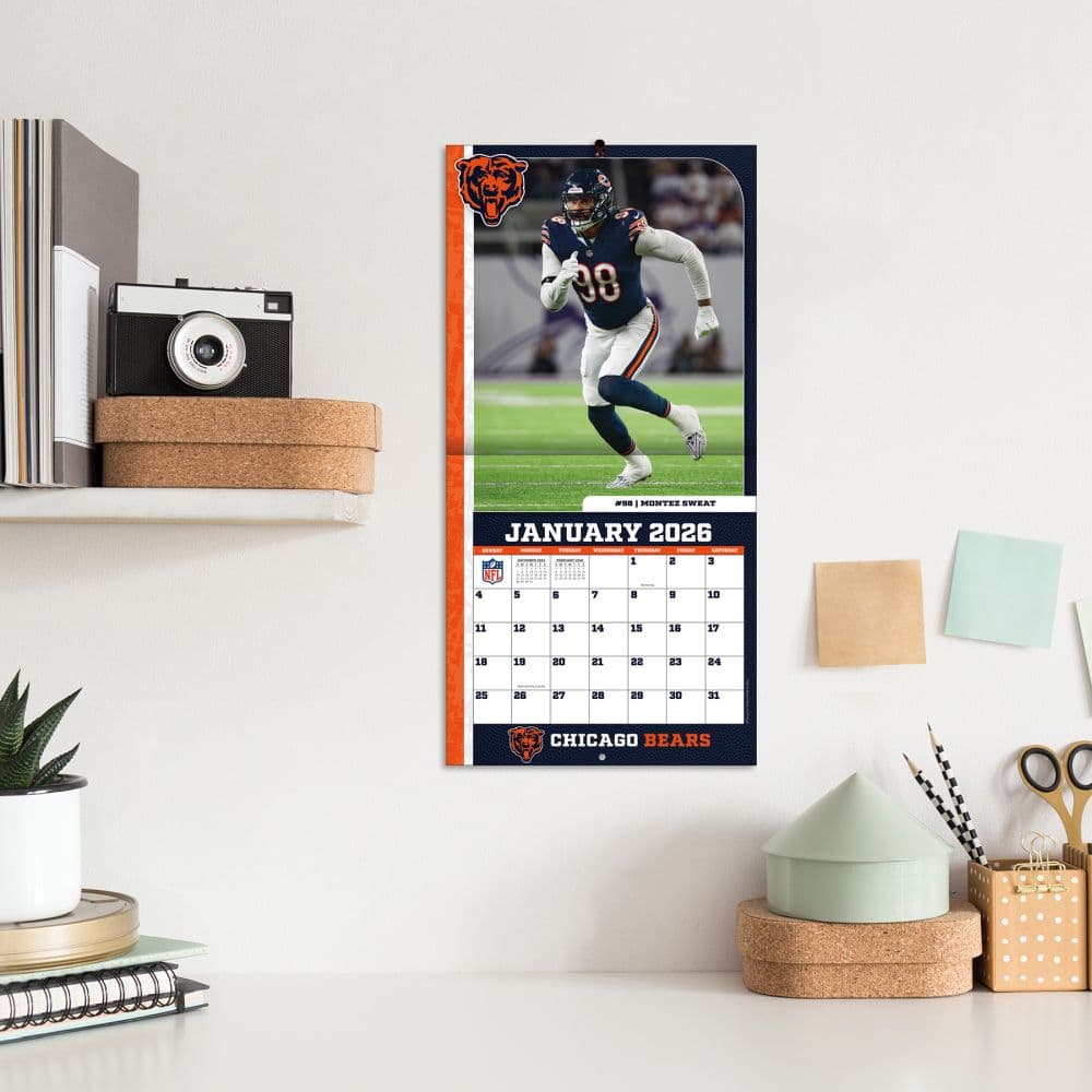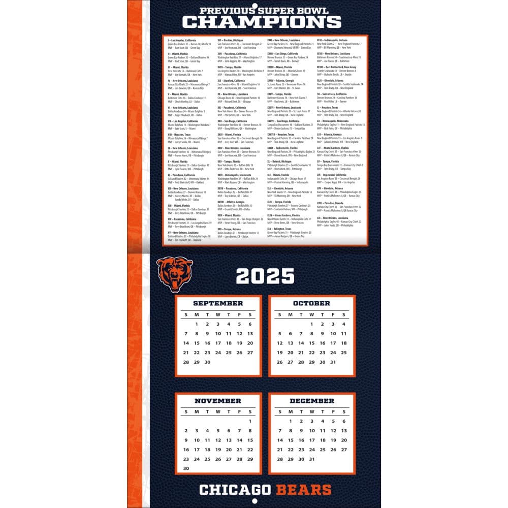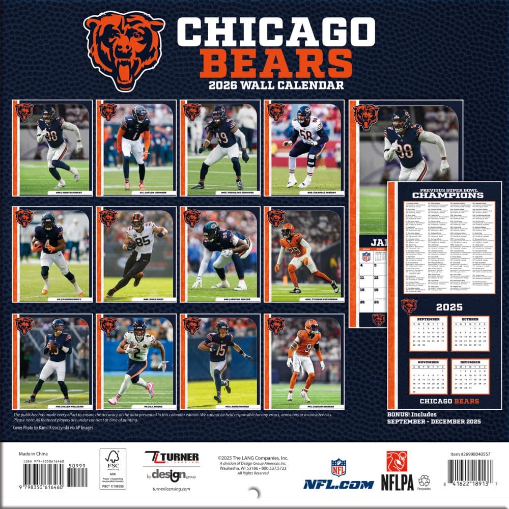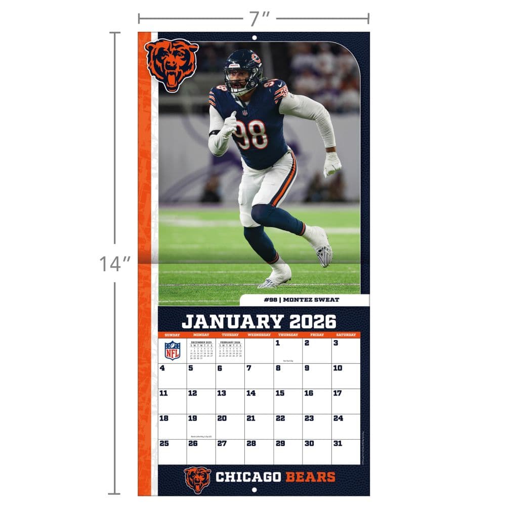Made for passionate football fans, this mini wall calendar includes action shots of your favorite players from the Chicago Bears every month! Each month also includes professional athlete bios and new graphics featuring team colors and logos. Made with exceptional quality, the mini calendar also includes bonus pages that feature Sept. - Dec. 2024 and the past Super Bowl results! 12-month format (January - December 2025).
