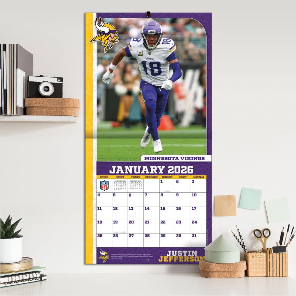 Don't miss out on this exclusive NFL collectible. Hang it in your workspace, sports den, or gift it to a fellow Vikings fan. Order your 2026 Justin Jefferson NFL Wall Calendar by Turner Licensing today and get ready to tackle the year with inspiration from one of football's finest!