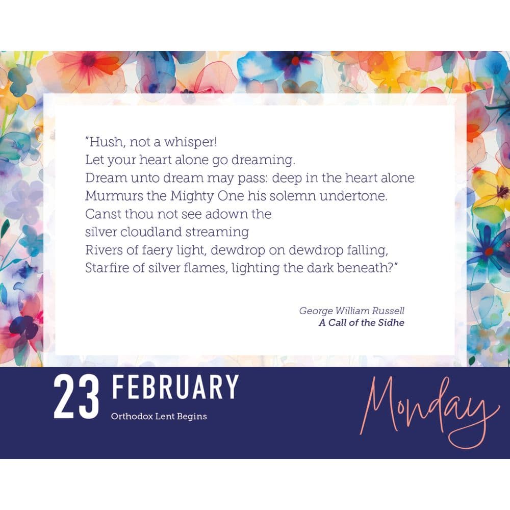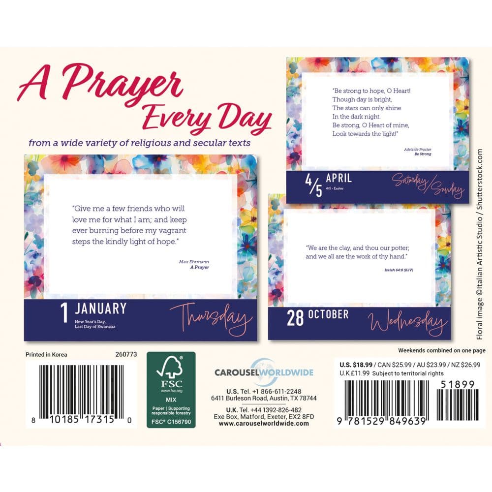 Begin each day of 2026 with a serene moment of reflection using the 2026 Daily Prayer Inspiration Desk Calendar by Carousel Calendars. This beautifully designed calendar is your daily companion for spiritual rejuvenation, offering a unique prayer each day sourced from a diverse mix of religious and secular texts. It's an ideal way to bring a touch of peace and contemplation to your daily routine, whether at home or in the office.
