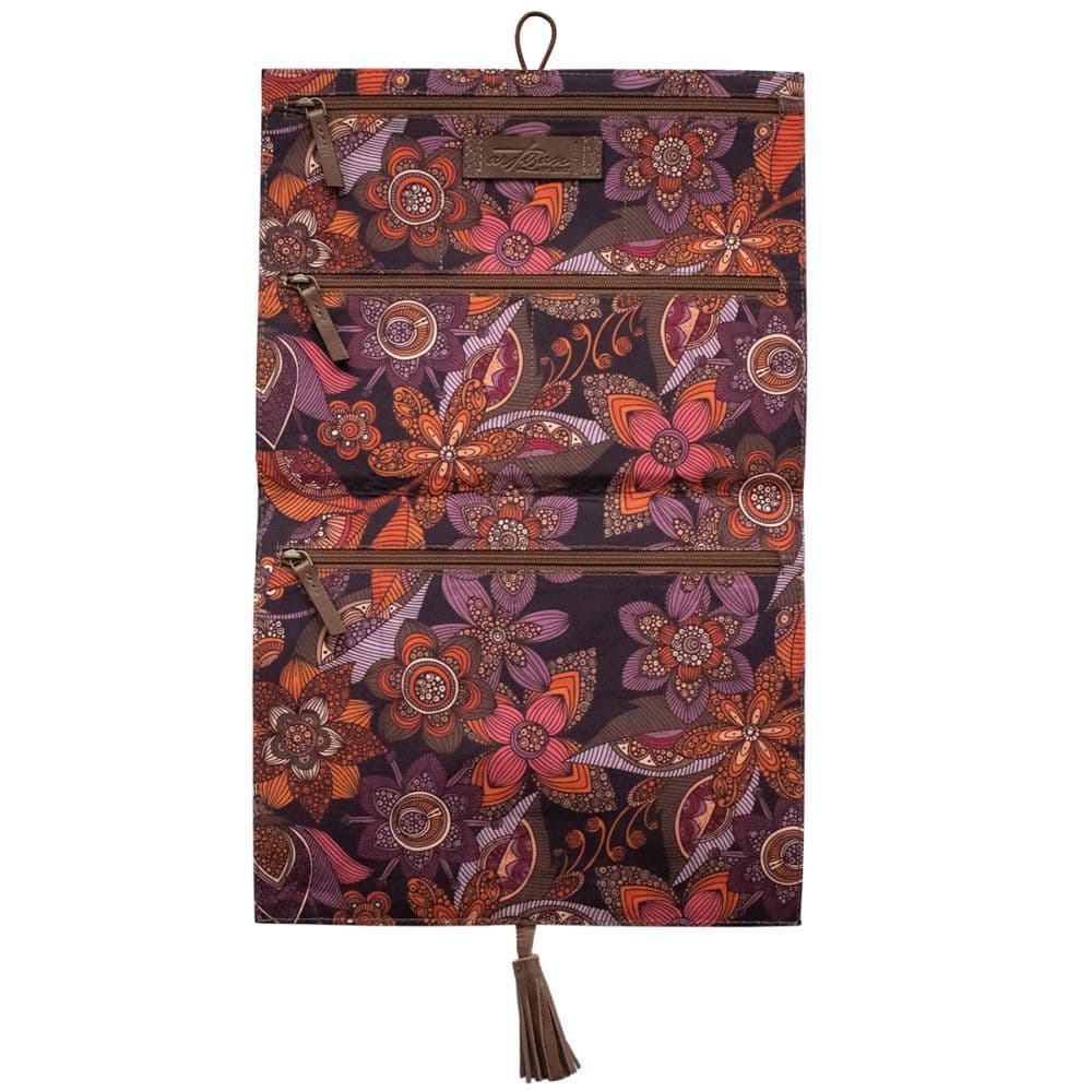 The Artisan by LANG Lucy Jewely Attach? is made from luxurious, geniuine leather and includes six compartments with zipper closures. A fashionable, water resistant lining, featuring designs by Valentina Harper, adds a pop of color to the bag. Includes an elastic loop to help keep jewelry secure or as an option for hanging. Size: 10"w x 8"h x 0.5"d.