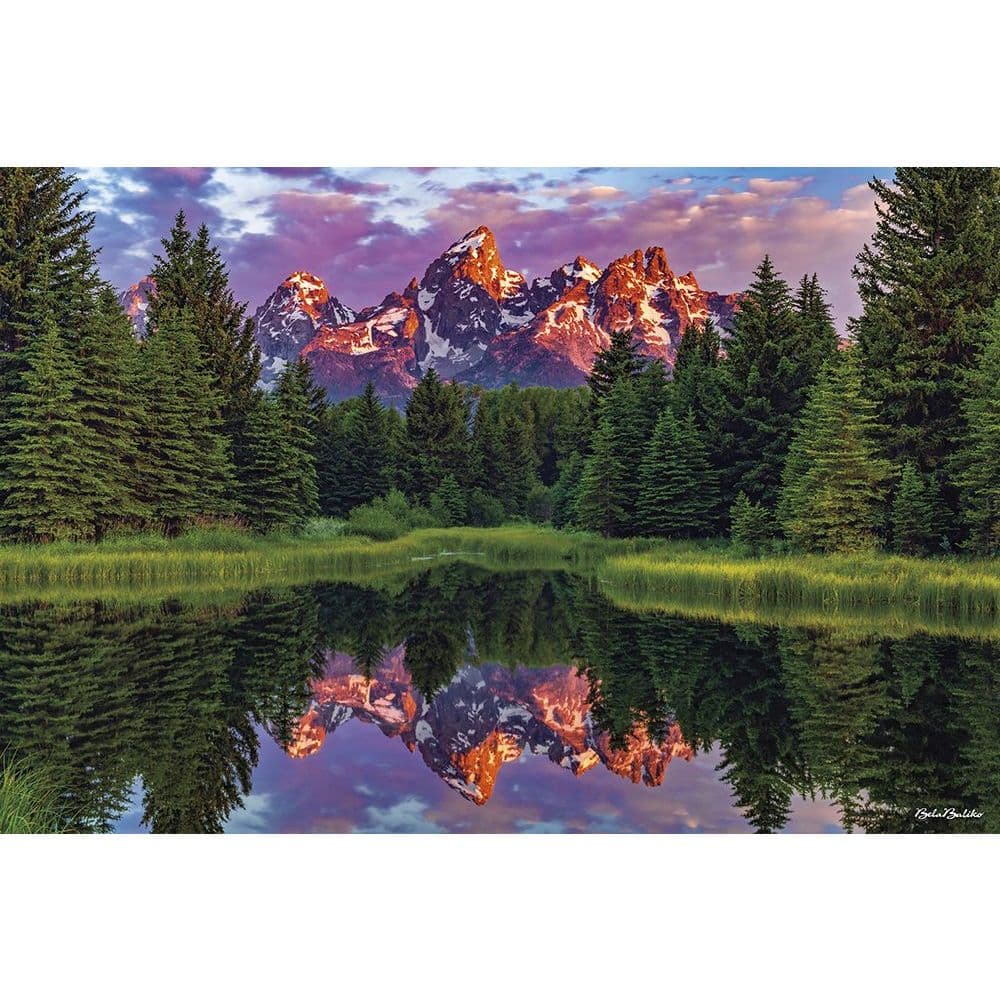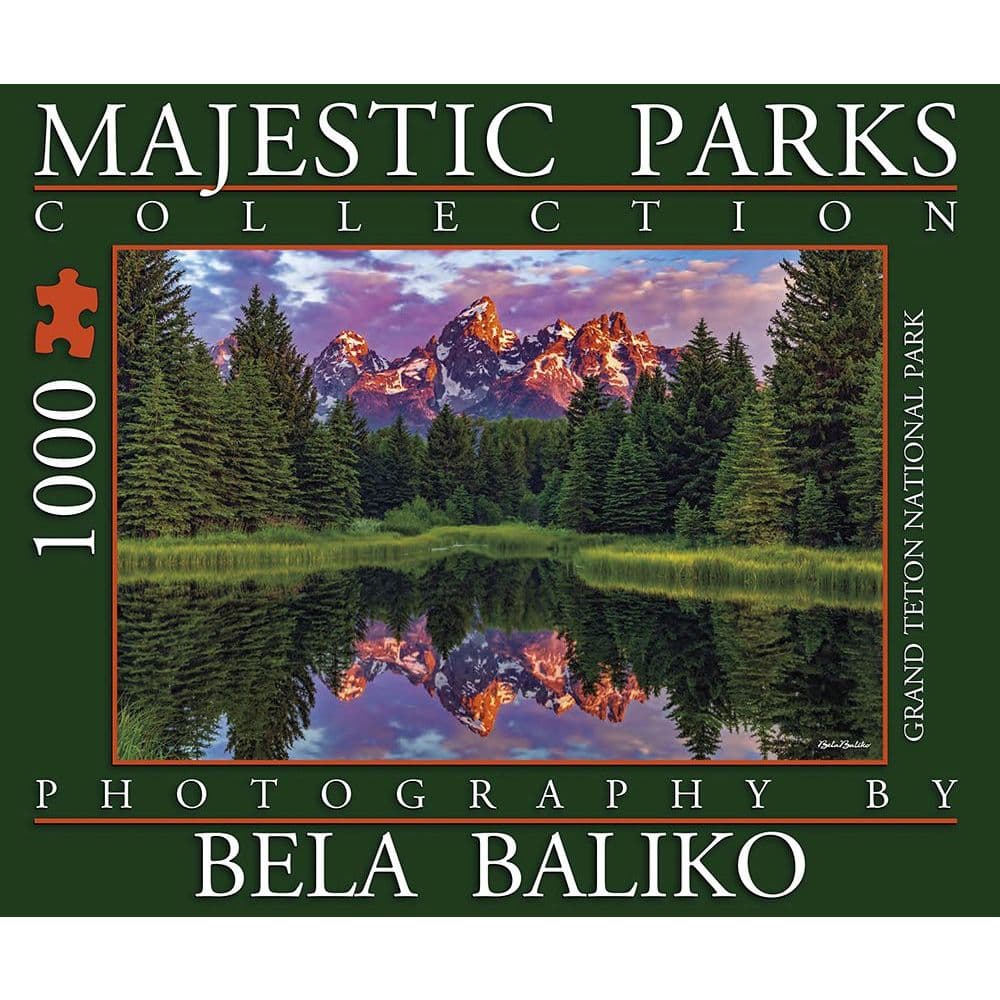 Featuring the amazing International award winning photography of Bela Baliko, our Majestic Parks Collection showcases our precious natural treasures. Predawn just begins to illuminate the mighty peaks of the Grand Tetons, almost perfectly reflected in the still waters at Schwabacher Landing. Try your skill with this challenging 1 000 piece puzzle. Our high quality puzzle will delight you and your fellow puzzlers with its vibrant colors, sturdy pieces, and clean cuts with NO PAPER DUST! Enjoy our entire line of entertaining jigsaw puzzles. Finished puzzle size measures 29.5" x 19.5" and is recommended for ages 12 and up. UPC 824160525964