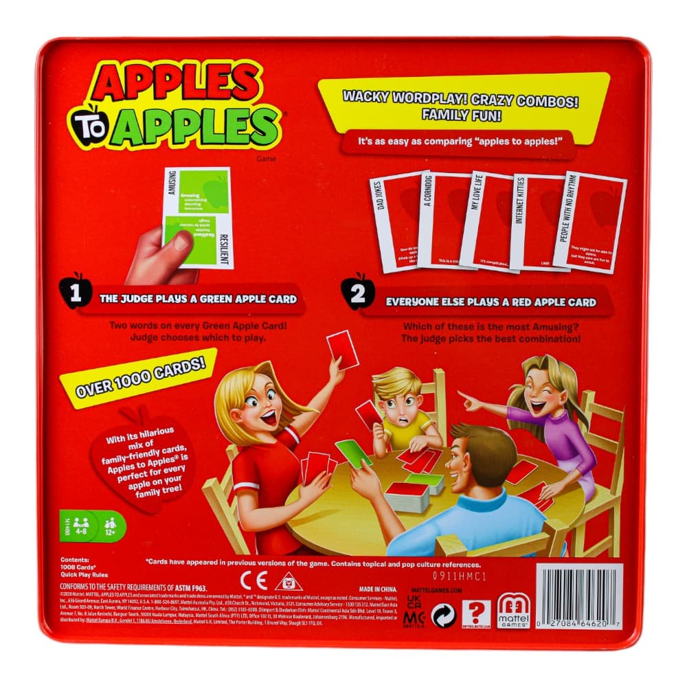 Experience the laughter and fun with the Apples to Apples Party Tin, a game that has captivated over 3 million players worldwide! This special edition comes packed in a vibrant red tin, making it a perfect gift and an excellent addition to any game night. With over 200 unique cards not found in the original set, this game promises endless entertainment and hilarious comparisons for 4 to 10 players.