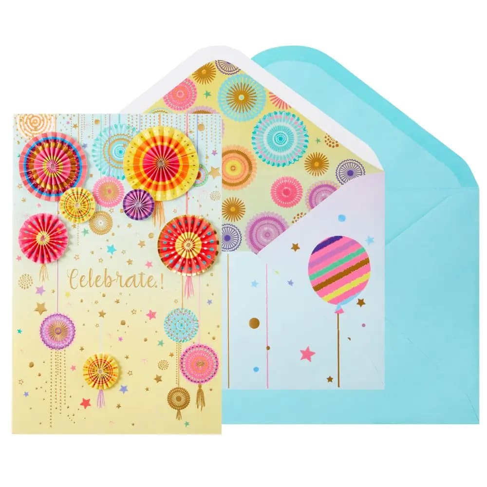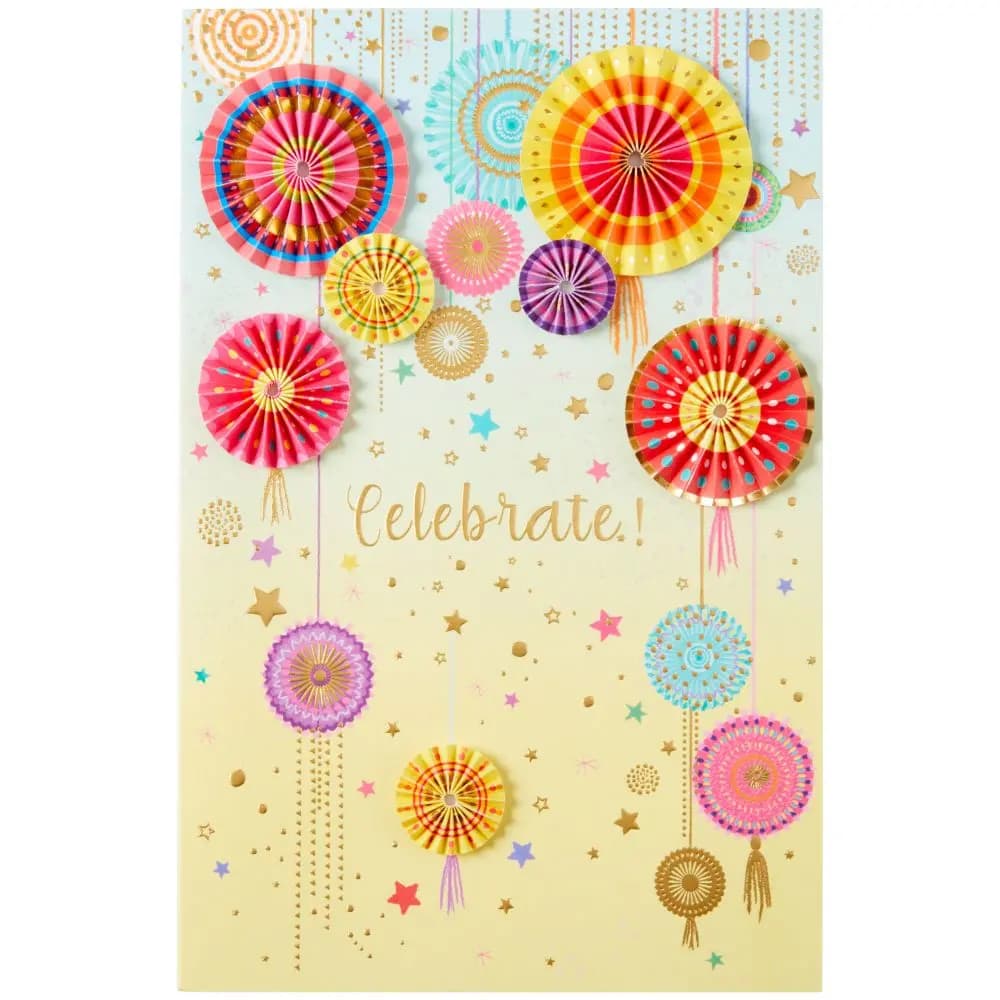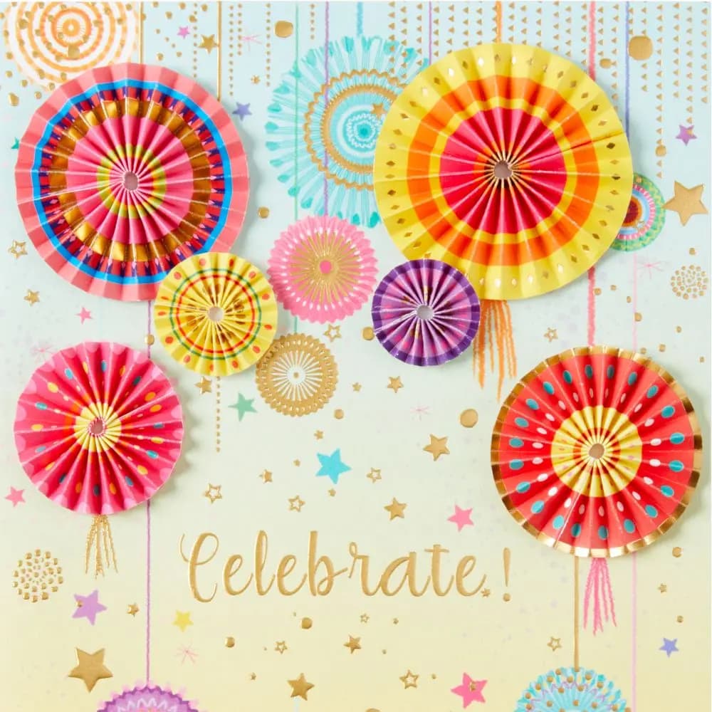 Artistic Brilliance: The card's highlight is the alluring array of handcrafted fans, each bearing intricate designs and radiant hues. The fans, an emblem of elegance and festivity, come together to create a whirlwind of birthday wishes.