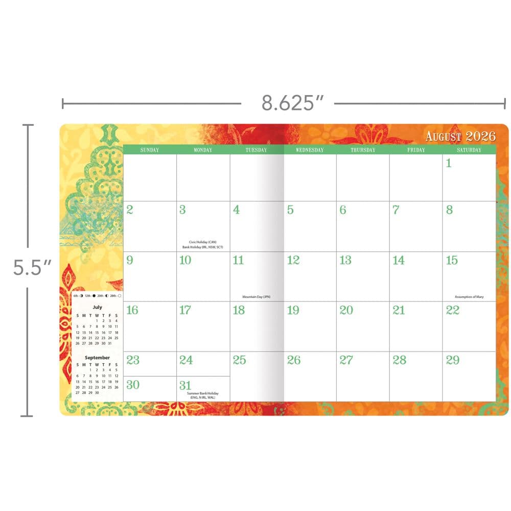 Stay organized and inspired with the Bohemian Monthly 2027 Pocket Planner by The Lang Companies. This beautifully designed planner spans 17 months from August 2026 to December 2027, featuring the enchanting artwork of Susan Winget. Its compact size makes it an ideal companion for both daily use and travel, easily fitting into your bag or pocket.