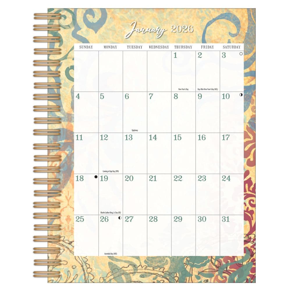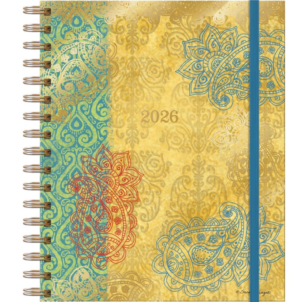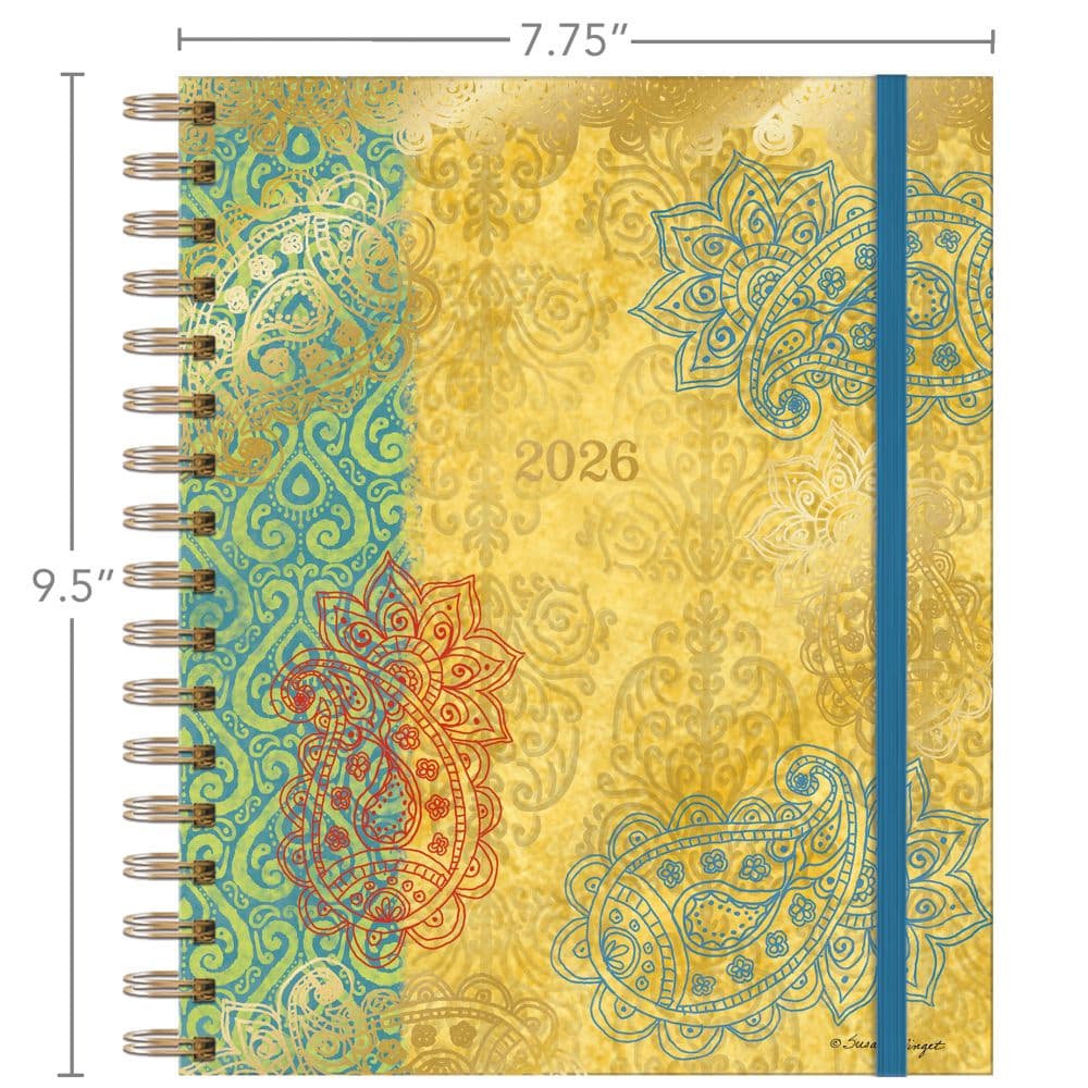 The WSBL Bohemian 2026 File-it? Planner is a planner and filing system all in one! Record your engagements on the calendar grid and store your documents in the built-in file folder for each month! Each file folder is perforated for easy removal and filing. A "Notes" section on the back lets you label the contents. In addition, the entire planner is decorated with colorful bohemian elements by artist Susan Winget!