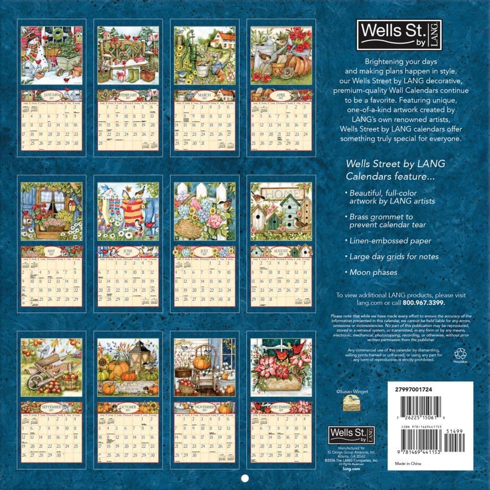 Step into a serene world every month with the 2027 Comforts of Home Wall Calendar by Susan Winget, featuring the charming artwork of Susan Winget. Each page turns to reveal a new tranquil home and garden scene, beautifully rendered in full color and based on hand-painted originals. This calendar is not just a way to track dates but a gallery of art that brings a cozy, inviting atmosphere to any room.
