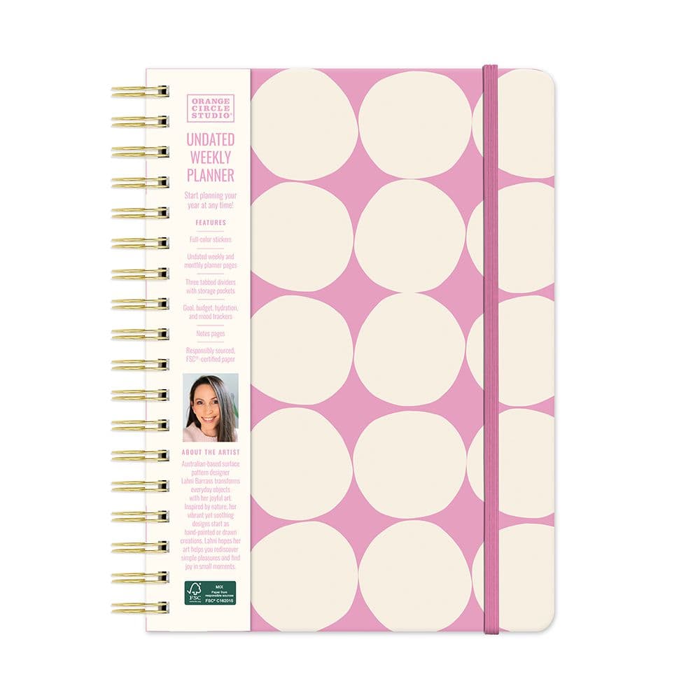 The Darling Dots Undated Planner by Orange Circle Studio is meticulously designed for those who appreciate flexibility and style in their planning. This versatile planner allows you to start organizing your schedule at any point in the year, thanks to its undated format. Featuring a chic dot pattern and a robust wire-o binding, it's crafted to enhance both your planning efficiency and aesthetic appeal.