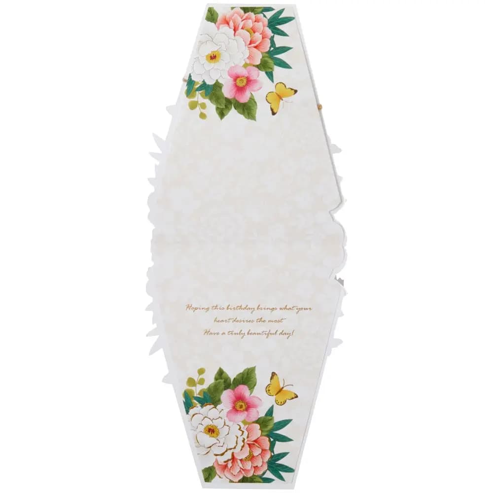 Heartwarming Interior: Beyond the impressive die-cut design, the card opens to a space filled with warmth and love. The interior, with its complementary motifs, offers the perfect canvas for your heartfelt birthday wishes.