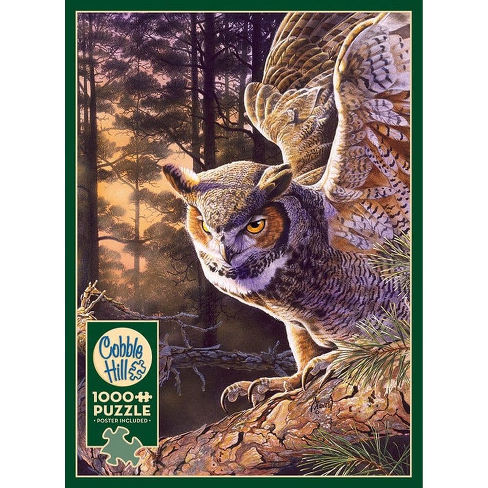 Immerse yourself in the mystical allure of the "Evening Hunter" with our latest 1000 piece puzzle, a tribute to the majestic Great Horned Owl. This puzzle brings to life the intricate beauty of nature's formidable nocturnal predator, boasting a highly detailed and remarkably accurate portrayal that will captivate and challenge enthusiasts of all levels. Crafted with the utmost care by Cobble Hill, the "Evening Hunter" is not just a puzzle but a piece of art, featuring unique random-shaped pieces that ensure a fresh and engaging experience with every assembly. Whether you're a seasoned assembler looking for a worthy challenge or a casual enthusiast eager to dive into the world of detailed puzzling, "Evening Hunter" promises an enriching and fulfilling experience that will dazzle and delight.
