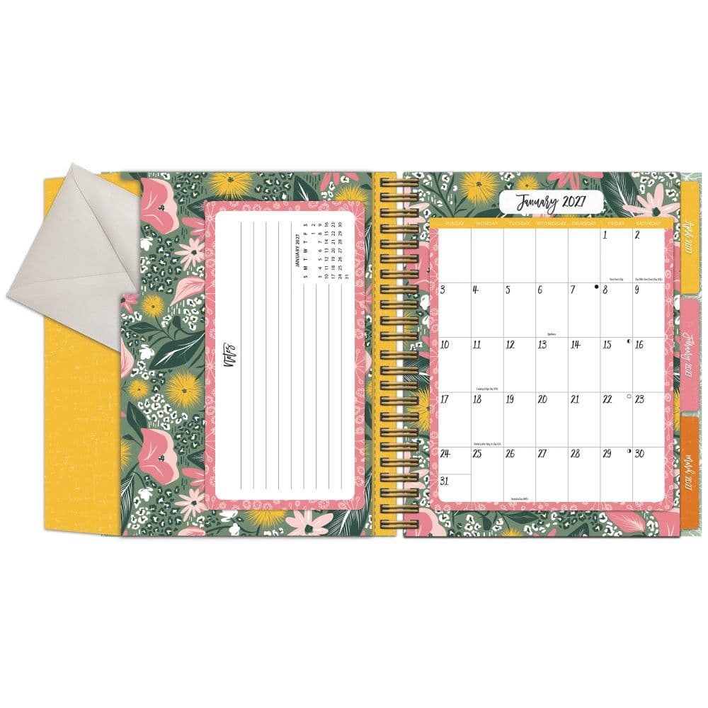Stay organized with the 2027 Flora & Fauna File-It Planner |a planner and filing system all in one! Record your engagements on the calendar grid, and store your documents in the built-in file folder for each month. Each file folder is perforated for easy removal and filing. A Notes section on the back lets you label the contents. In addition, the entire planner is decorated with colorful artwork by Heather Dutton.