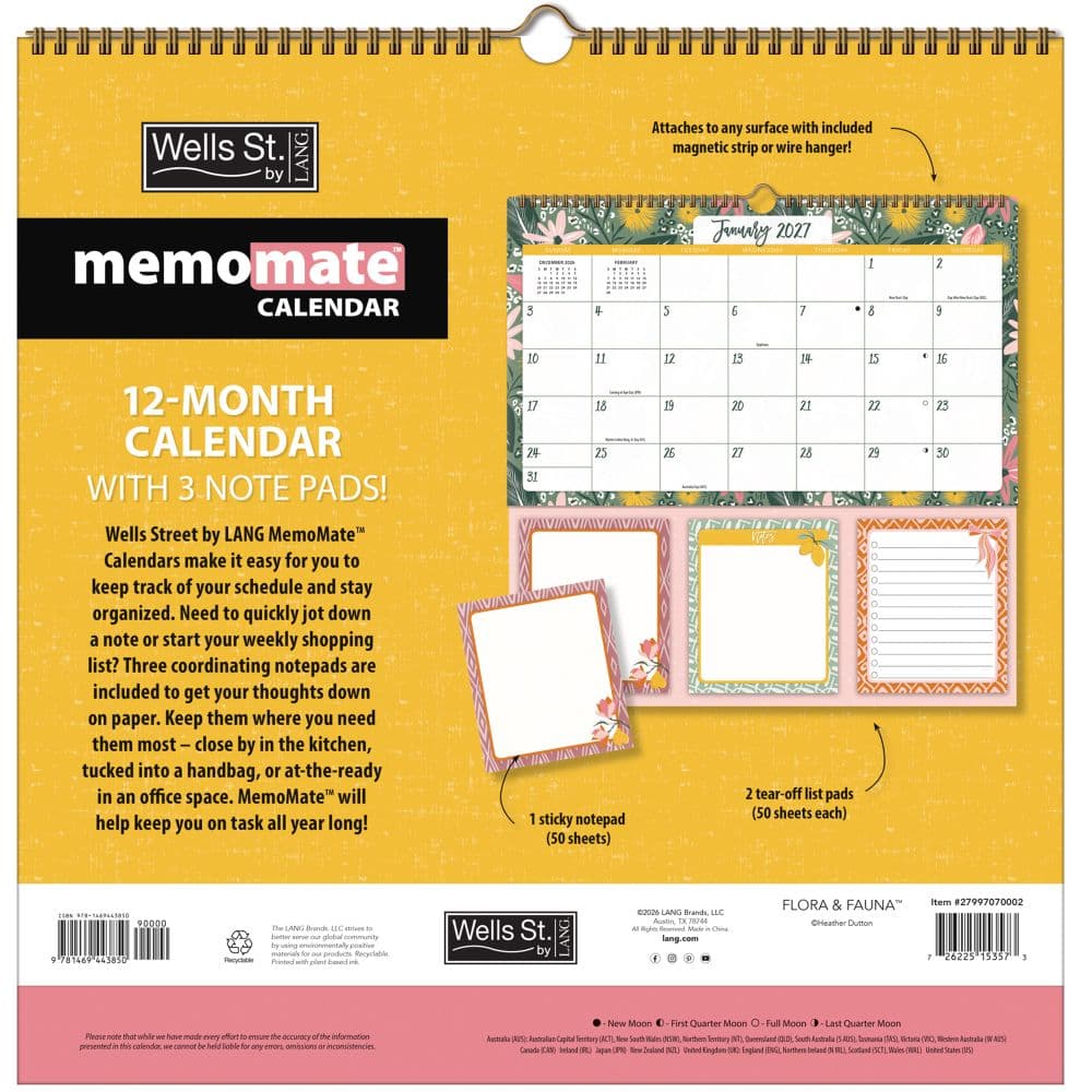 Start your year off right with a blend of beauty and functionality. Order your Flora and Fauna MemoMate 2027 Spiral Calendar by Heather Dutton today and transform how you track your days!