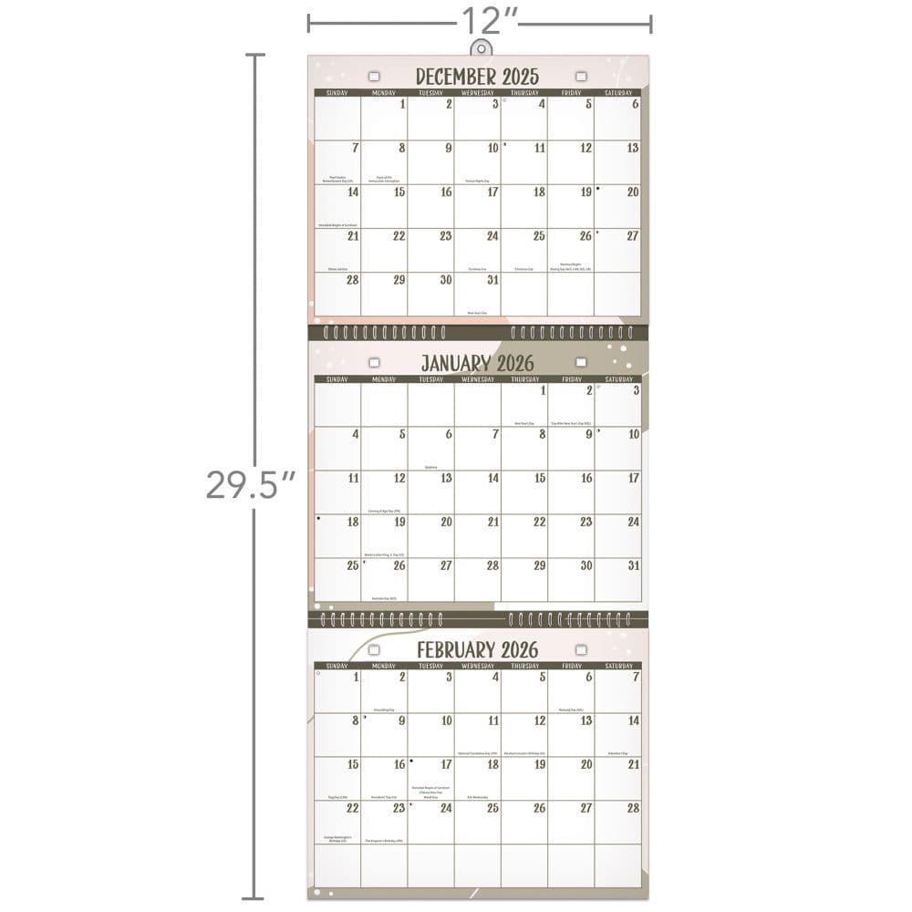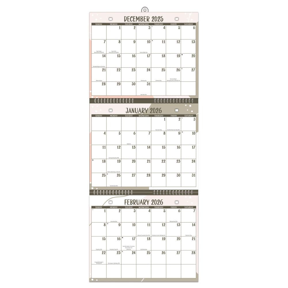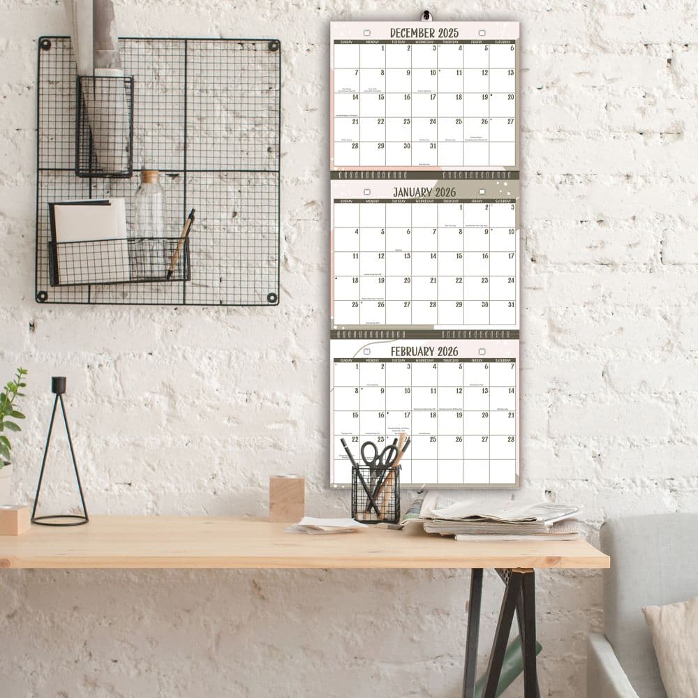 The Focused 2026 Tri-View Calendar lets you see three months of engagements and appointments at once! Stay on top of your schedule by arranging three months in any order, from December 2025 - January 2027 . The vertical layout helps you quickly reference events from month to month. Six interchangeable hooks are included for easy organization. With a sleek, streamlined design, the Tri-View Calendar is perfect for busy families, long-term event planning and tracking project deadlines.
