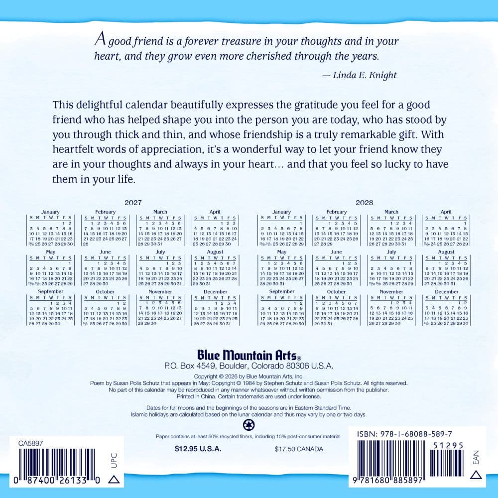 Don't miss out on this opportunity to show your friends how much they mean to you. Order the 2027 Friends Are the Most Special People in Life Wall Calendar today and make every day a celebration of friendship!