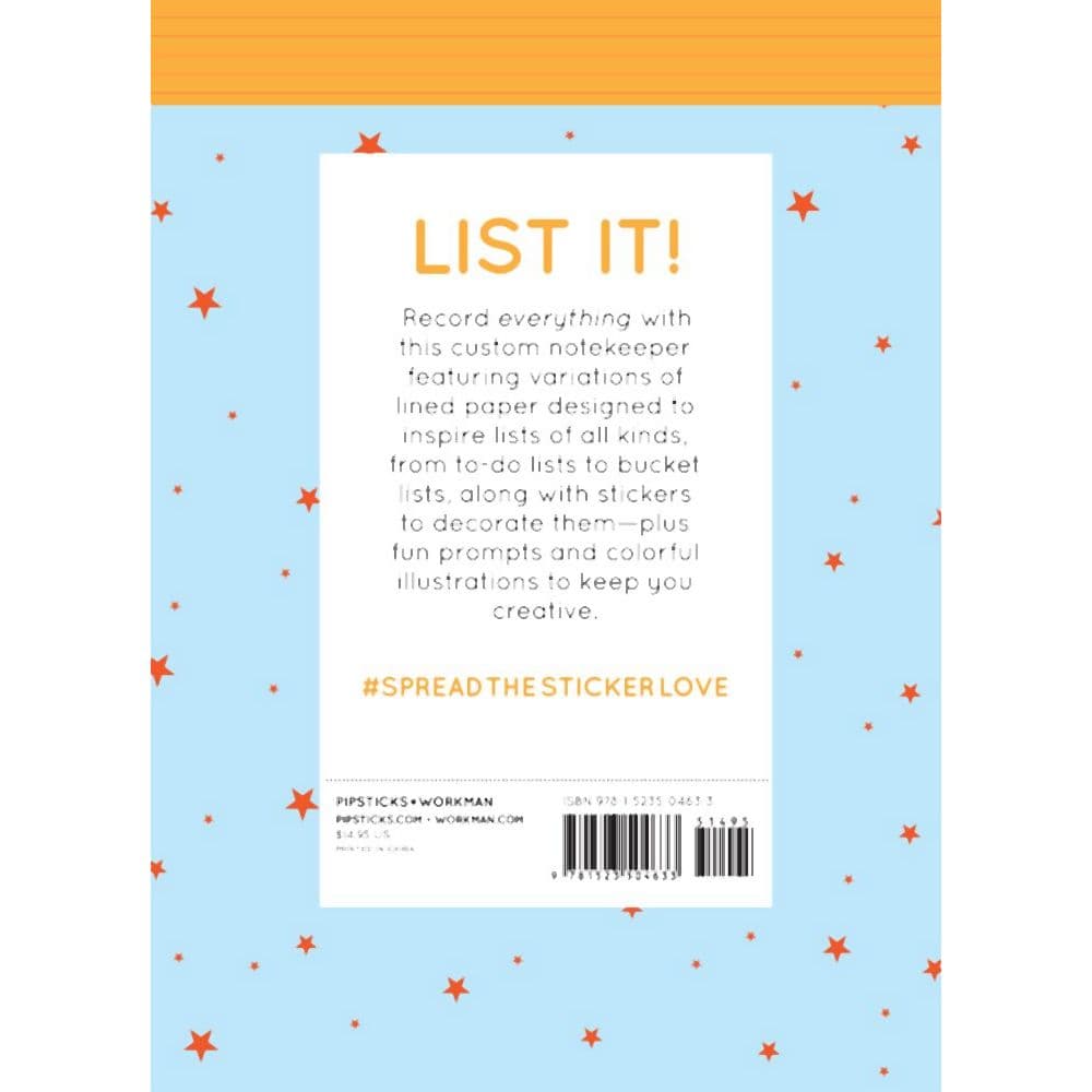 List keepers rejoice! The perfect accompaniment to a Pipsticks planner, this notekeeper will capture your to do lists, favorite things lists, and all your brilliant ideas anywhere, any time. It?s a desktop notepad, a jotter for your bedside table, and can be carried anywhere. Includes quality lined paper that stands up to a variety of pens, pencils and markers ? perfect for lists plus two sheets of glossy stickers. Cover includes foil embellishments and an elastic band closure.