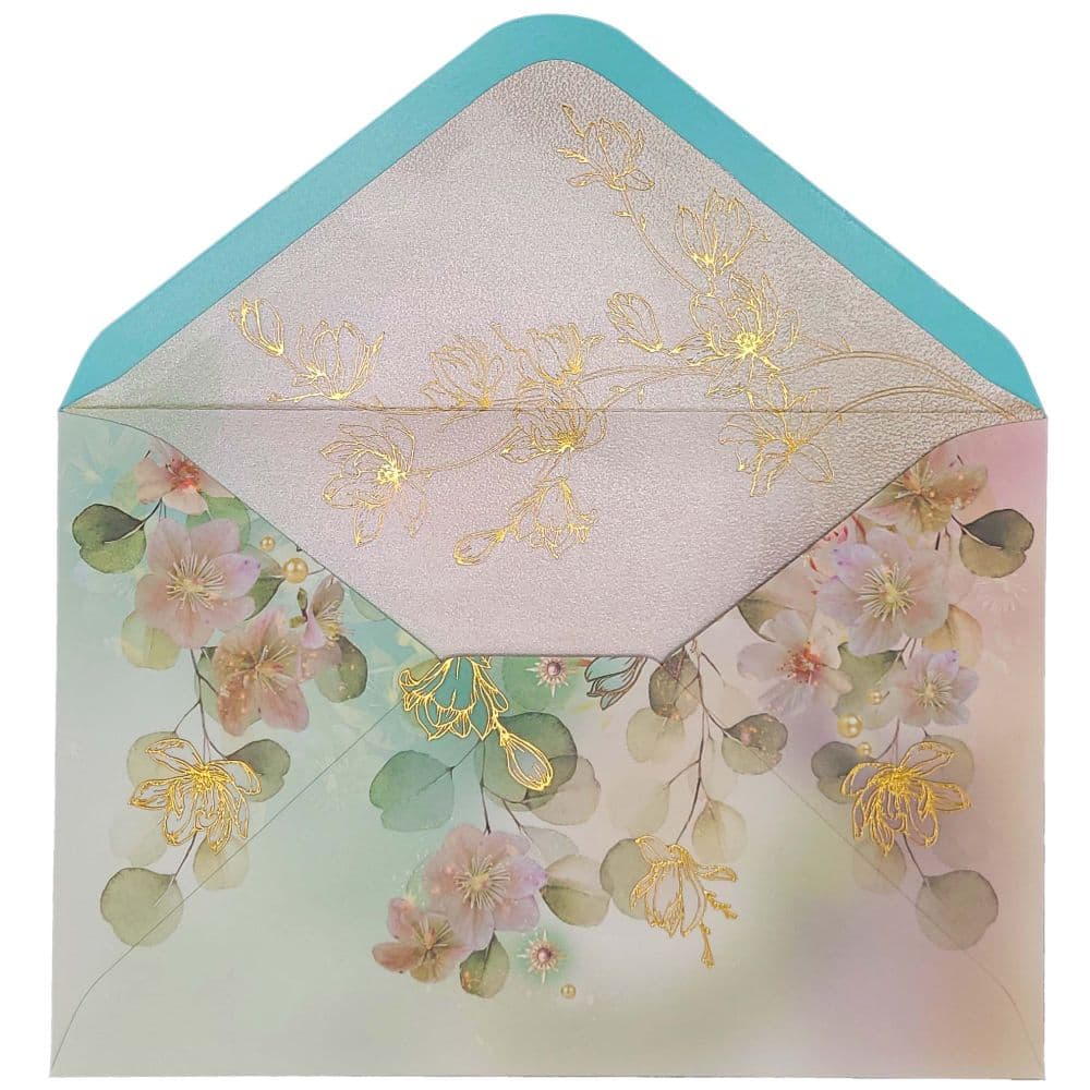 Elegantly Adorned Inner Envelope: Elevate your message of love with the meticulously crafted inner envelope, a canvas of artistic brilliance. Every detail is thoughtfully designed to enhance the anticipation, creating an enchanting experience that precedes the joy of opening the card.