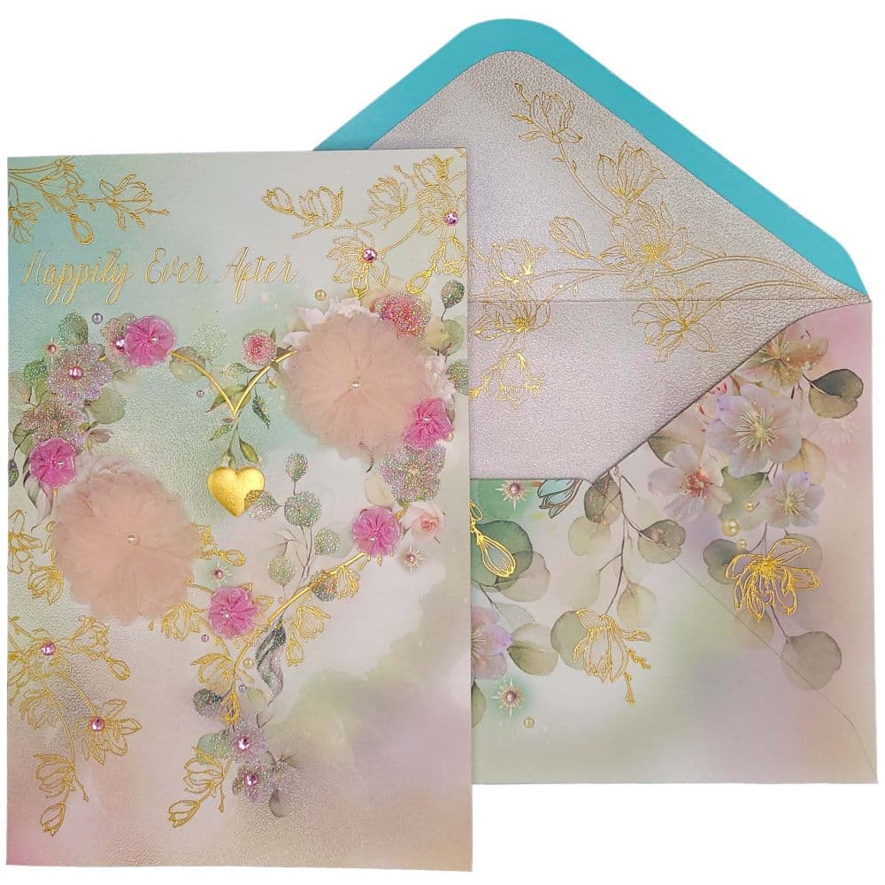Intricate Elegance: Immerse yourself in the allure of this collector's edition card, adorned with meticulous details on both its exterior and interior. The delicate heart wreath motif takes center stage, embodying the everlasting nature of true love. This card is not just an expression; it's a work of art.