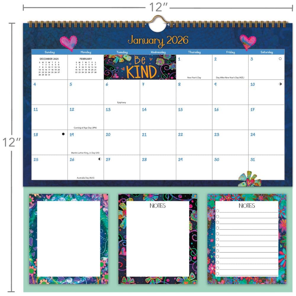 • Includes a 12-month span from January to December 2026 with U.S. and international holidays, helping you stay on top of important dates.