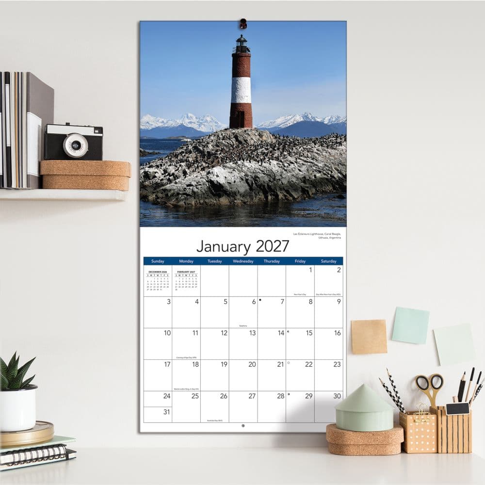 Adorn your wall with the Lighthouses 2027 Wall Calendar and keep your days organized while enjoying the tranquil beauty of lighthouses. Whether it's for personal use or a thoughtful gift, this calendar is sure to delight anyone who loves the sea and its guiding lights.