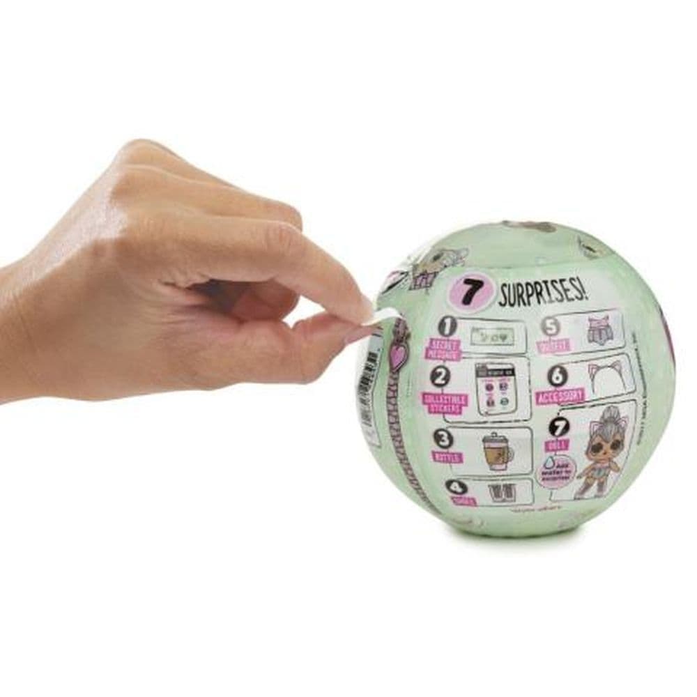 Seven layers of surprise including: (1) Secret Message Sticker, (2) Collectible Sticker Sheet, (3) Water Bottle Charm, (4) Shoes, (5) Outfit, (6) Accessory, (7) L.O.L. Surprise tots doll with water surprise Feed your L.O.L. Surprise tots doll with the water bottle