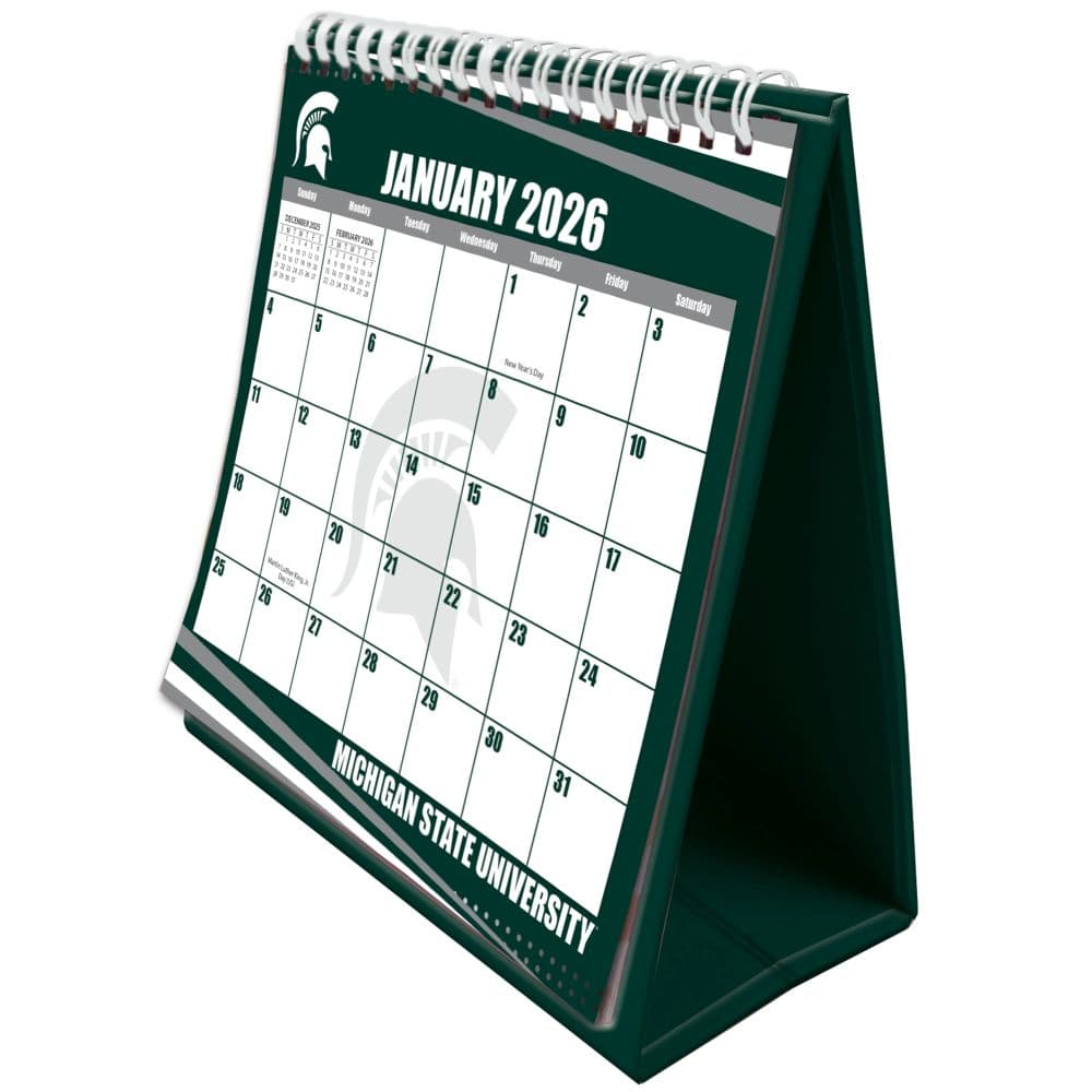 Get ready to plan your year with a touch of green and white! Order your Michigan State University 2026 Sports Easel Desk Calendar today and start the new year with Spartan spirit!