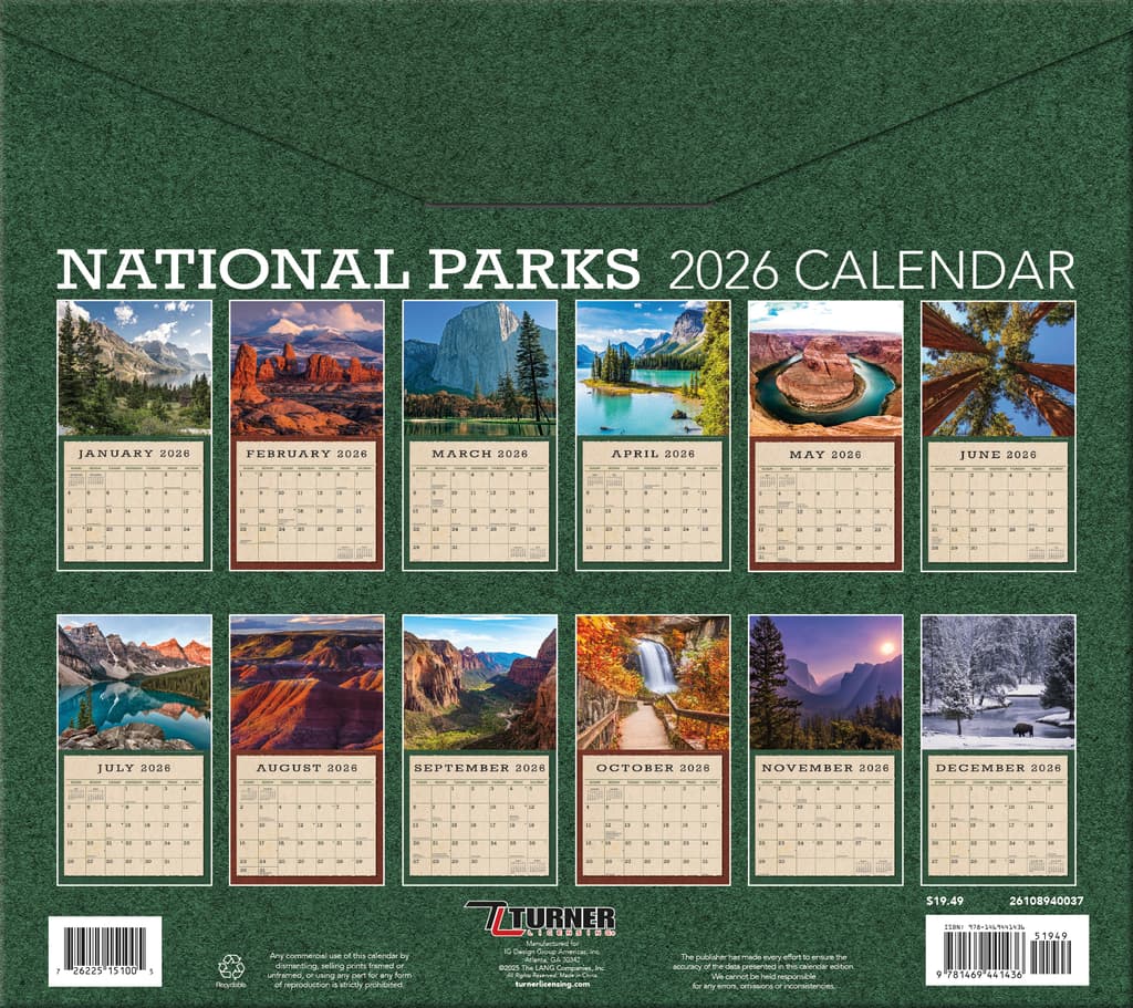 Adorn your wall with the 2026 National Parks  Wall Calendar, featuring exquisite monthly artwork of National Parks. This calendar from Lang Companies is not only a practical tool for daily planning but also a stunning piece of art that brings the beauty of nature indoors. Each page showcases detailed and colorful paintings, making it a perfect gift for nature lovers and art enthusiasts alike.
