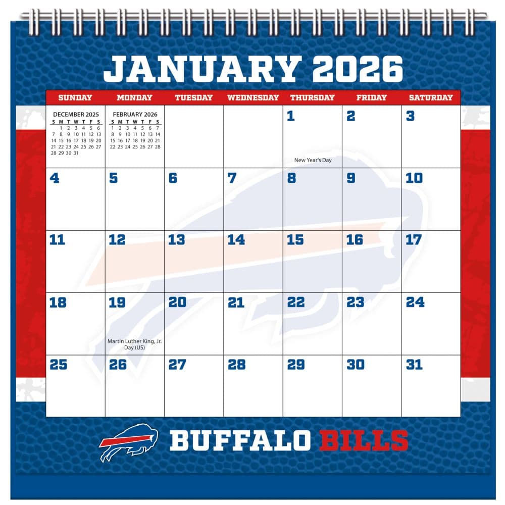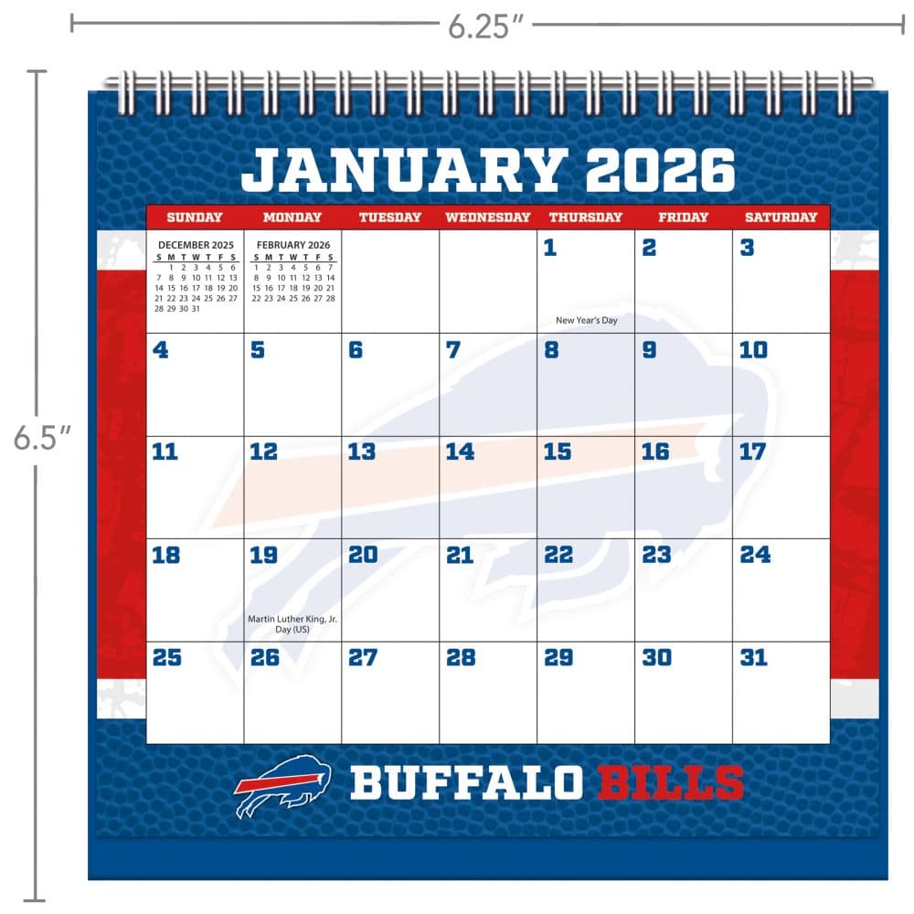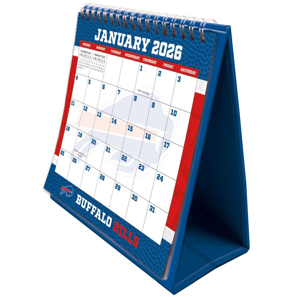 Ideal for any Buffalo Bills enthusiast looking to stay organized and spirited. This desk calendar also makes a great gift for fans of all ages. Don't miss a game or an important date with this stylish and functional NFL team calendar. Order your Buffalo Bills 2026 Easel Desk Calendar today and get ready to tackle the year ahead with your favorite team!