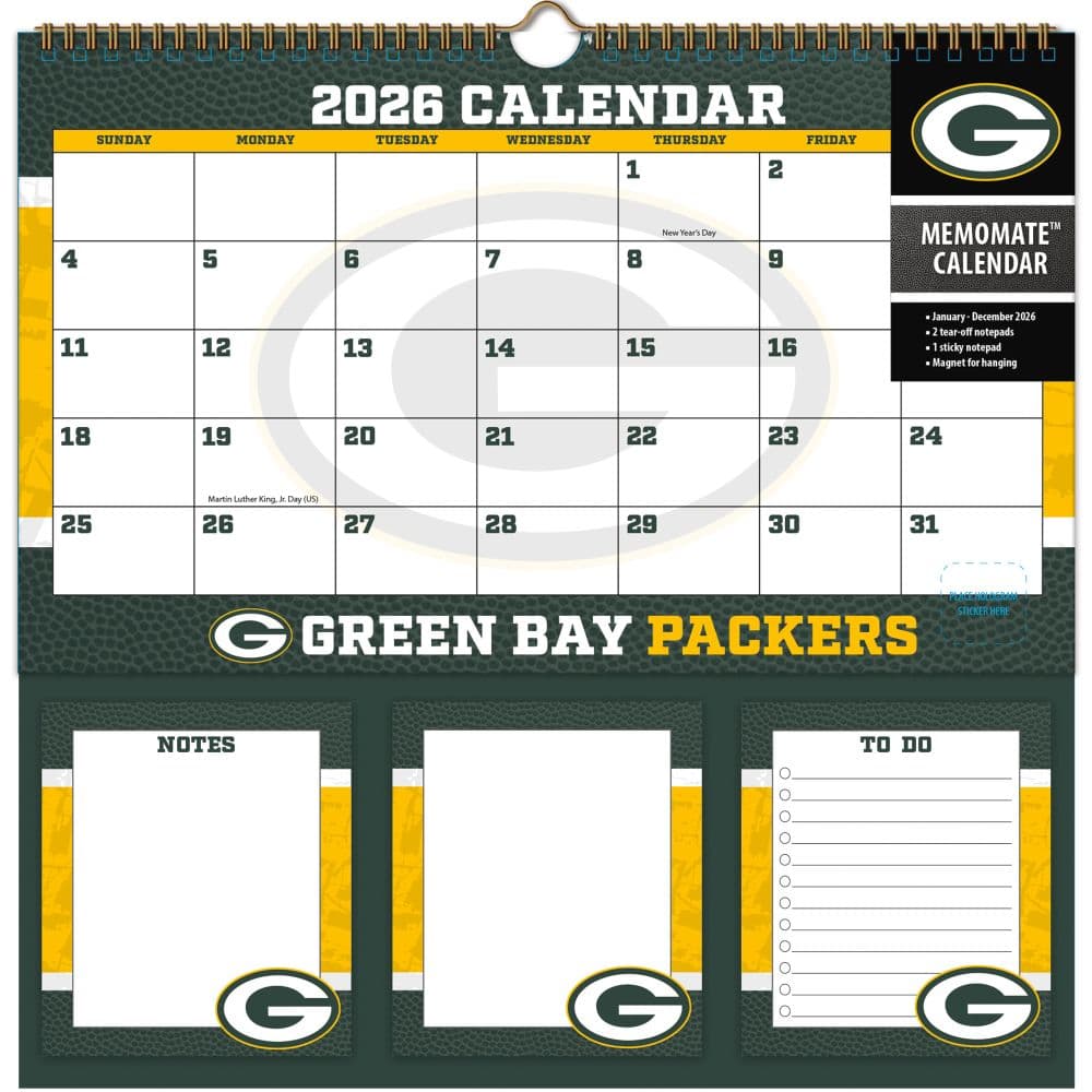 NFL Green Bay Packers 2026 Memomate Spiral Wall Calendar
