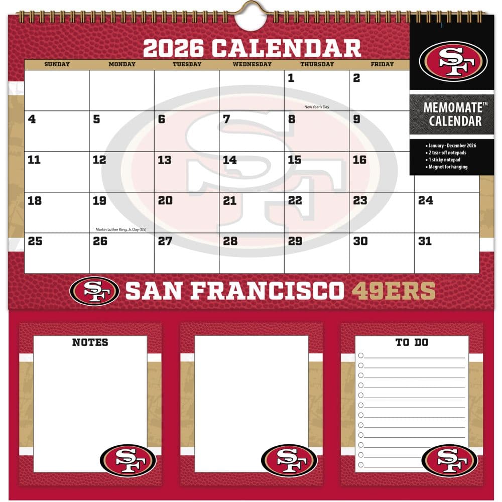 NFL San Francisco 49ers 2026 Memomate Spiral Wall Calendar