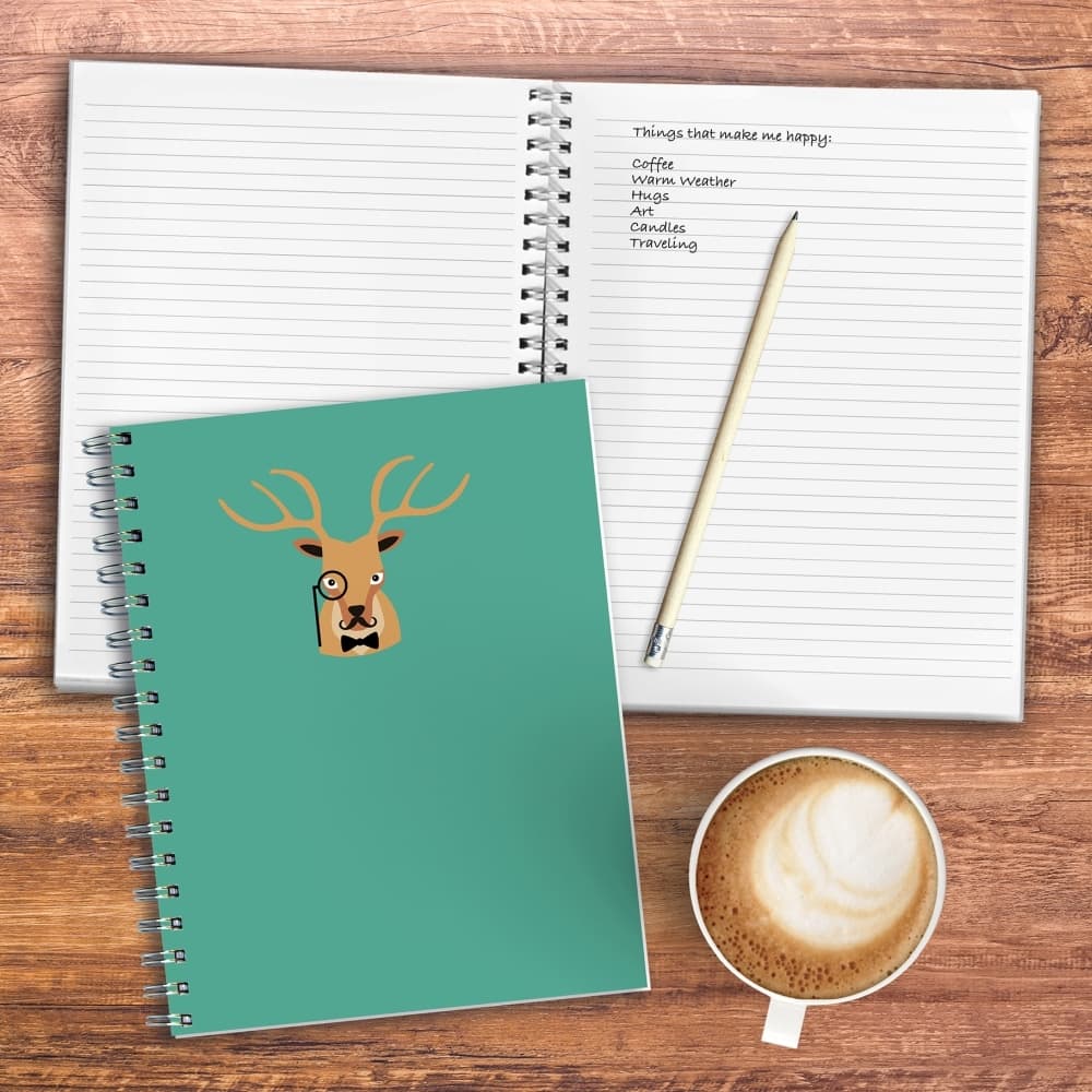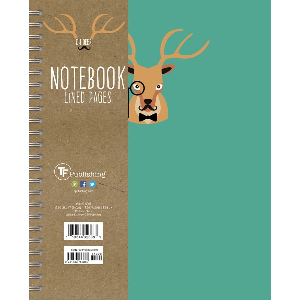 Oh Deer! Who wouldn't enjoy jotting notes or journaling with this fun deer wearing a bowtie and monocle? Perfectly sized for a handbag, backpack or briefcase this 7" x 9" lined wire-o journal will be right there with you when inspiration strikes! The soft green front and back covers are made of textured, durable material. With 142 lined pages with the wire-o binding to lay flat, it is sure to last throughout your creative note-taking, doodles, sketches and maybe your next novel!