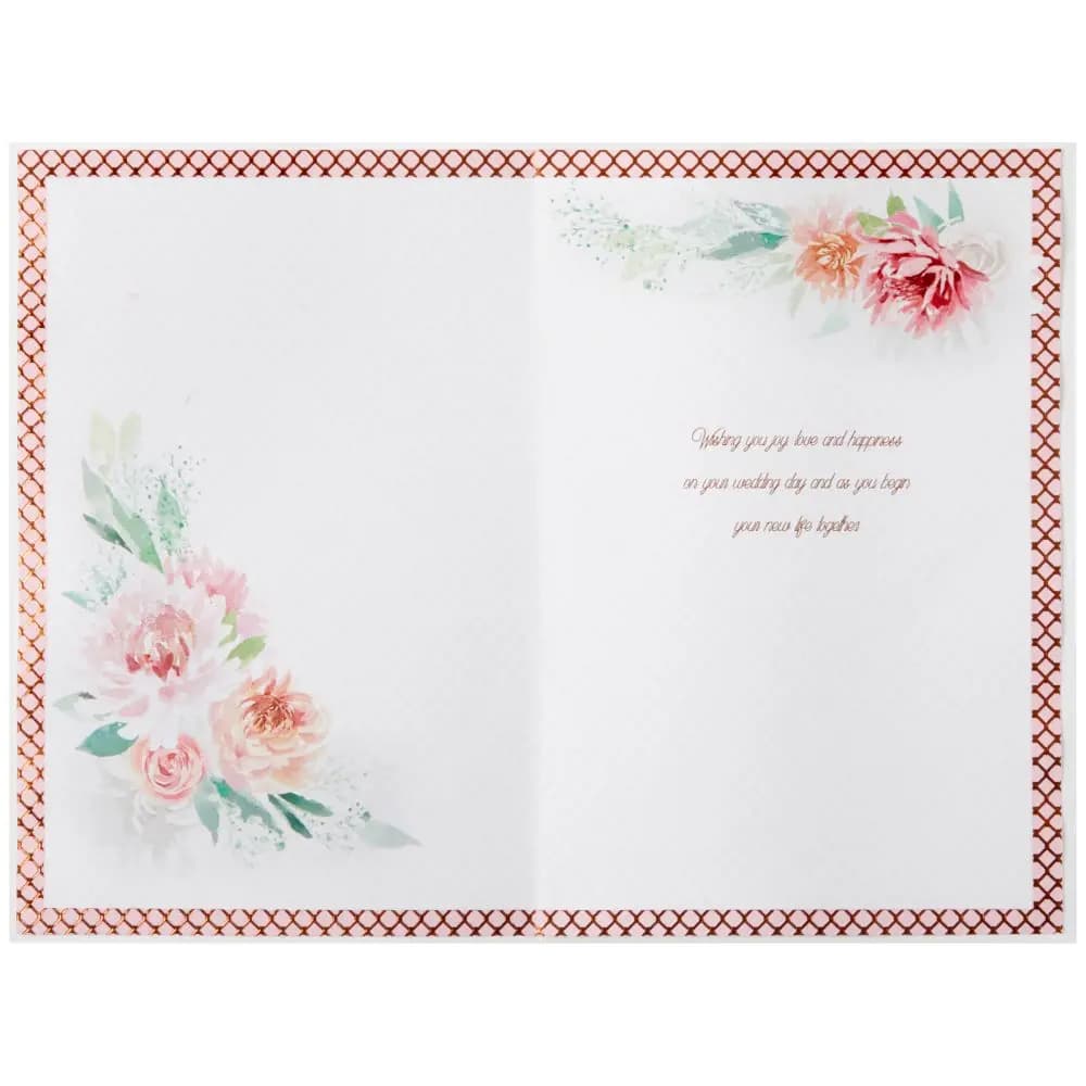 - Sentiment: Wishing you joy, love and happiness on your wedding day and as you begin your new life together