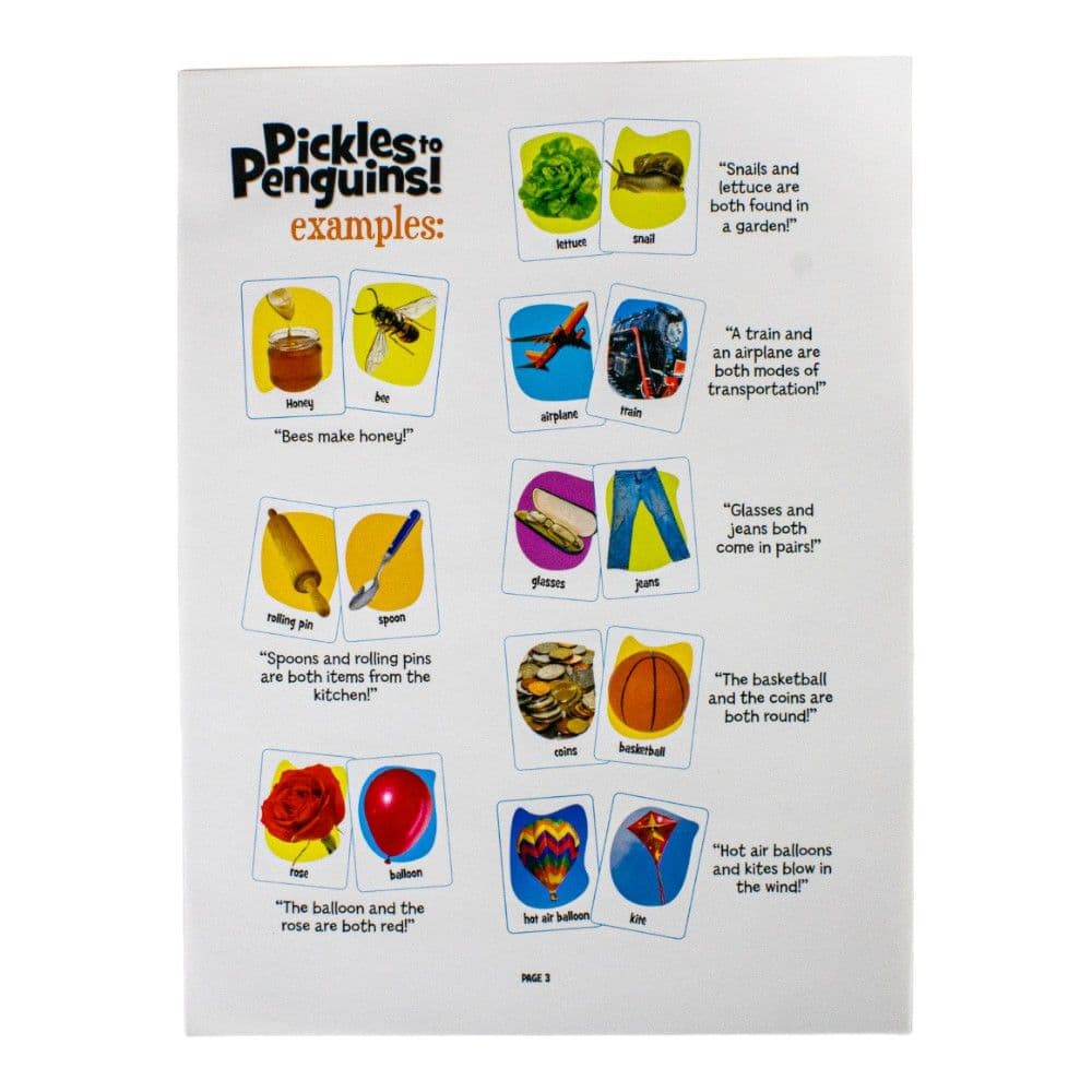Experience the excitement with the Pickles to Penguins Card Game, where quick thinking and fast-paced fun meet! This engaging card game challenges players to think on their feet, linking seemingly unrelated objects through clever connections. Perfect for family game nights or parties, it's designed to entertain everyone from kids to adults.