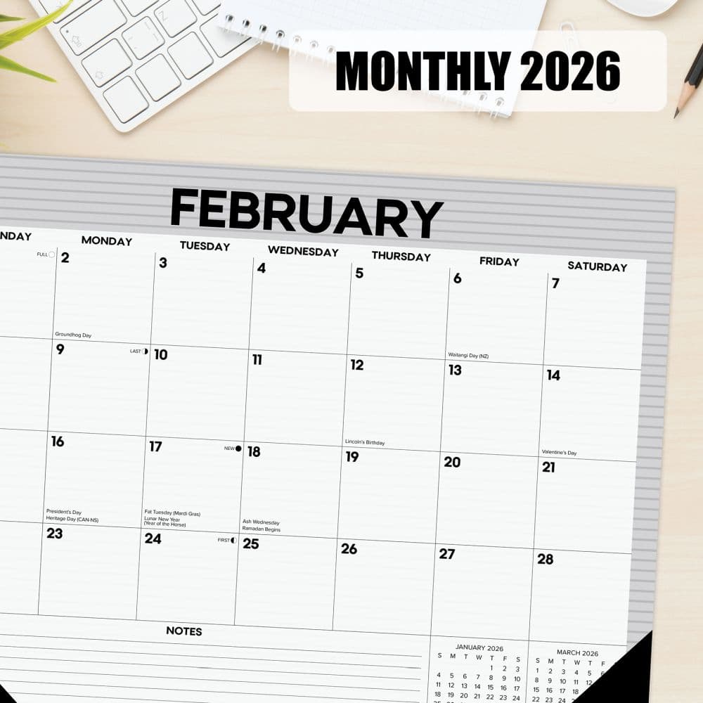 Improve the management and planning of daily and longer term tasks by keeping your monthly schedule on our desk calendar while liven up your work or home space.