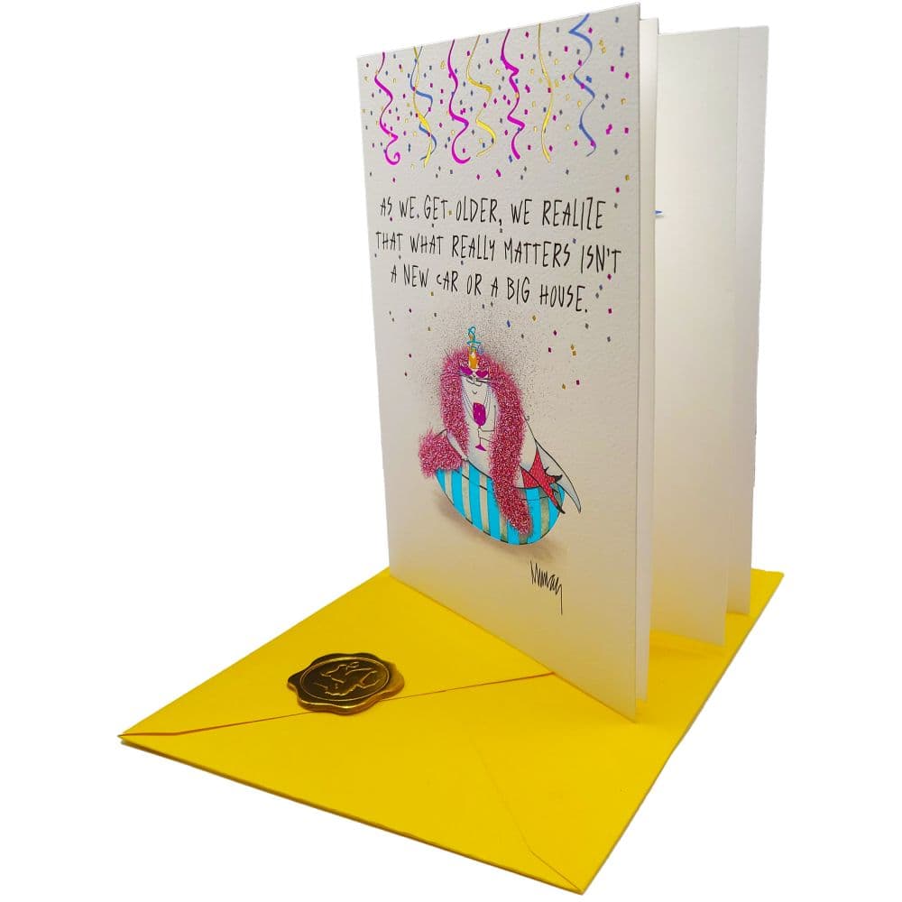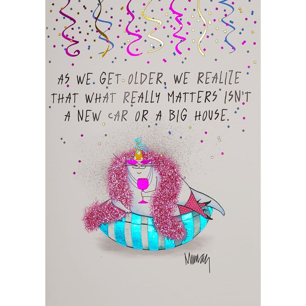 Introducing NIQUEA.D's "Plenty of Wine Birthday Card," a whimsical delight featuring charming artwork by the talented Leslie Murray. This humorous card humorously suggests that as the years go by, there's always plenty of wine to go around. Printed on premium cardstock, it radiates laughter and cheer, making it the perfect choice for adding a playful touch to birthday celebrations. Bring joy and merriment to your loved one's special day with this delightful creation from NIQUEA.D, where Leslie Murray's artistry adds a dash of fun to every occasion.
