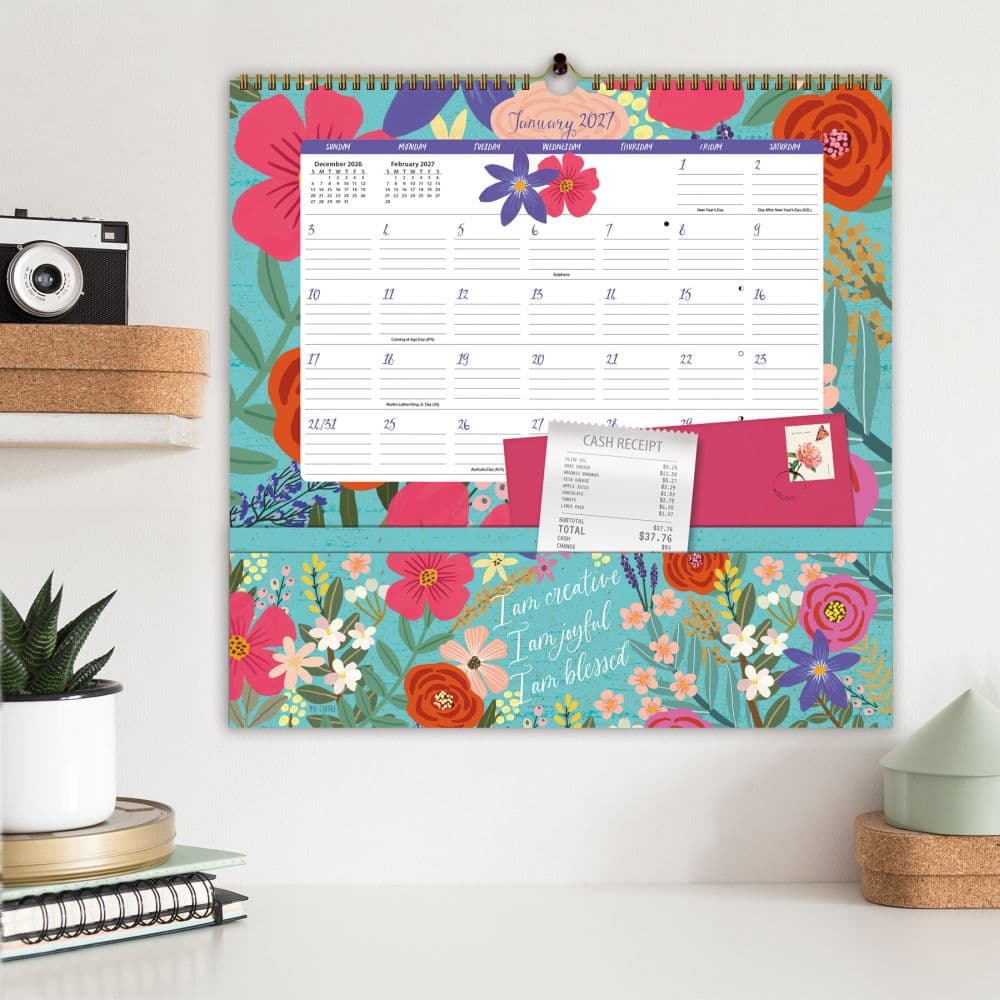 Note Nook, the original twenty-four pocket calendar, is designed to help you stay organized all through the year! The Shine Within 2027 Note Nook contains 12 months of calendar grids, decorated with bold, eruptive floral by Mia Charro, each with two pockets to store coupons, bills, receipts and more!