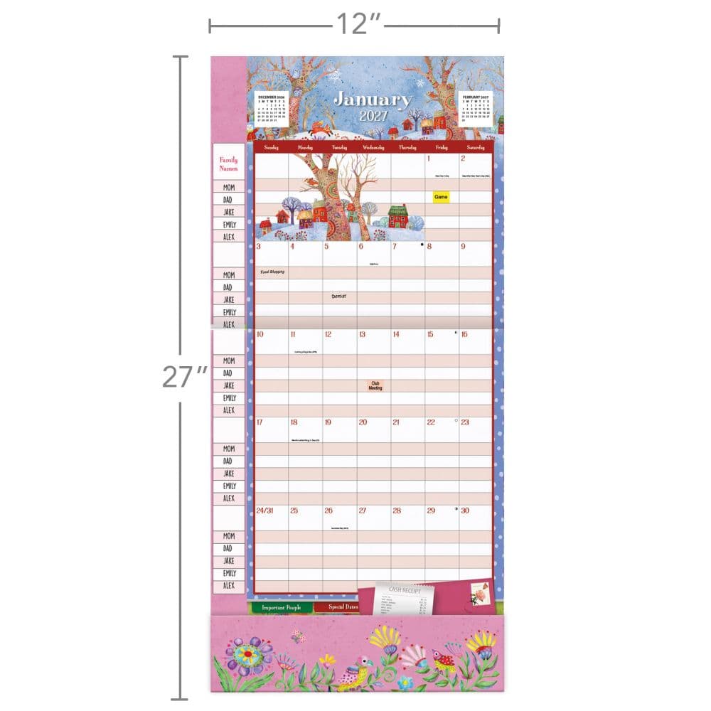 Organize your family's schedule effortlessly with the Simply Grateful Plan It 2027 Planner, designed by Wells Street by LANG. This 17-month planner, spanning from August 2026 to December 2027, is the perfect tool to keep track of appointments, events, and activities for up to five family members. Each month features delightful and inspirational artwork by Debi Hron, enhancing the visual appeal and inspiring positivity throughout the year.