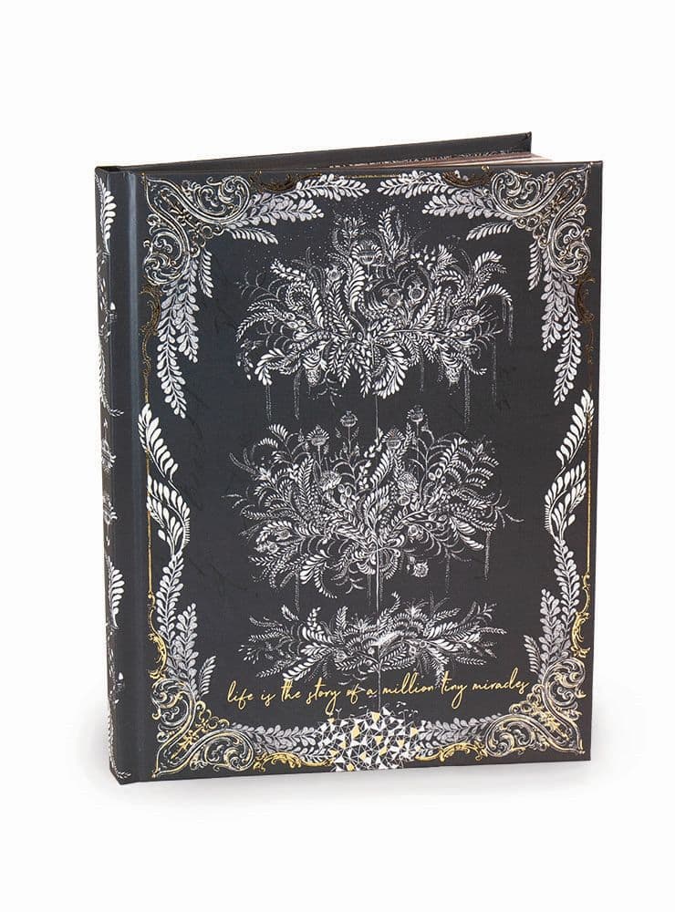 Our Hardcover Journal measures 7" x 9" and features gold foil accents on the front, back and spine. Inside pages are filled? with unique full color illustrations and finished with gilded edgings. High quality lay flat binding and a ribbon page marker complete this new PAPAYA! journal!