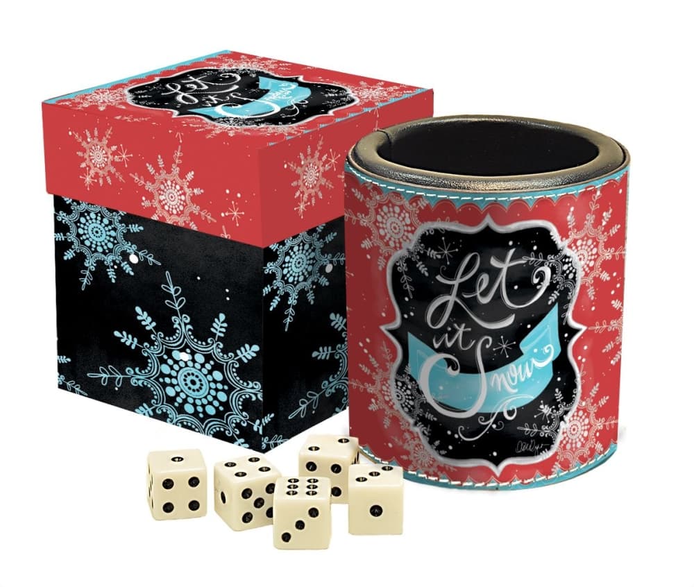 Gather with loved ones this winter for dice games with LANG's Winter Magic Dice Cup. This winter themed official size dice cup by LoriLynn Simms, covered in snowflakes and Let It Snow banner, includes 5 dice and a coordinating keepsake, storage box.