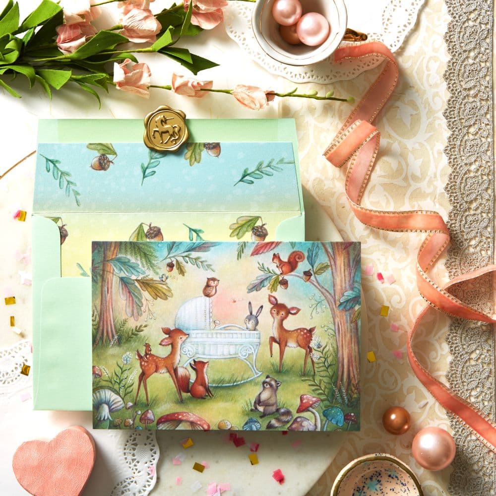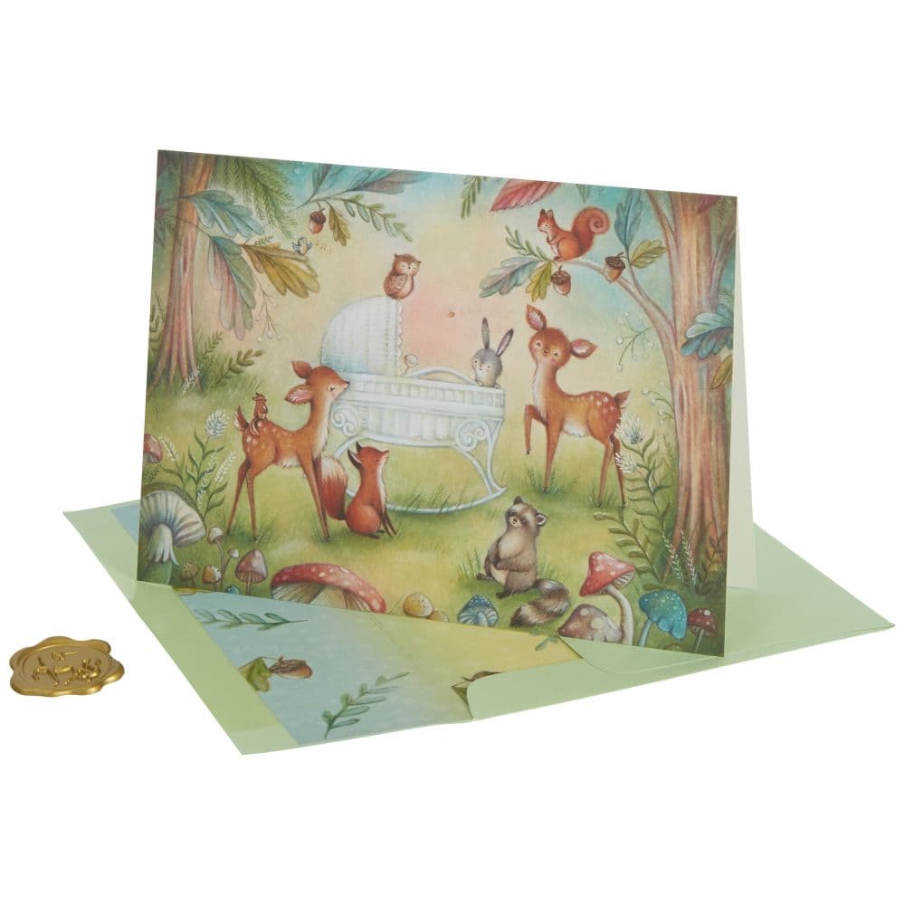 Congratulations on the new addition to your family! Help them welcome their little one with the Woodland Animals New Baby Card from NIQUEA.D.. This beautiful card will have both parents oohing and aahing with its sweet illustration of woodland animals gathered near the crib, shining in glossy gold foil and sprinkled sparkle glitter. They'll already know just how special this little bundle is. Inside, the sentiment offers words of congratulations and encourages them to 'Enjoy every moment of this wonderful time'. It's sure to be an adorable keepsake that is kept close long after it has been sent.